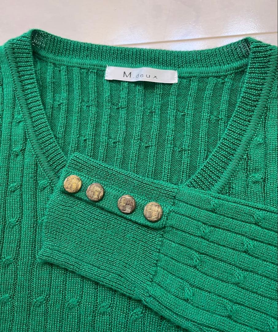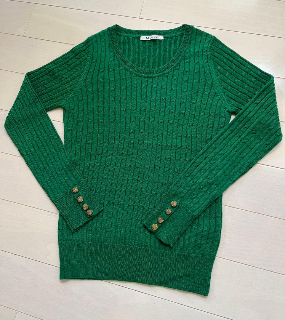 未使用 M.douxエムドゥ 緑グリーン リブ編み 長袖セーター ニット