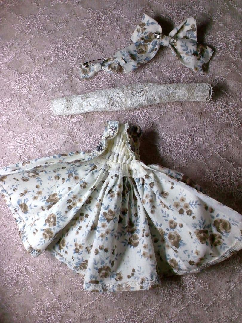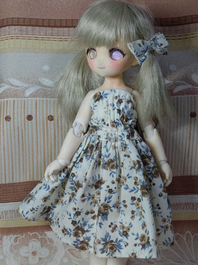 手作り♪1/6多様性サイズ*バラ柄ワンピース*ギャザータイプ*小物追加可*半試作