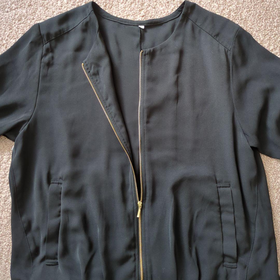 黒 ノーカラージャケット ジッパー付き