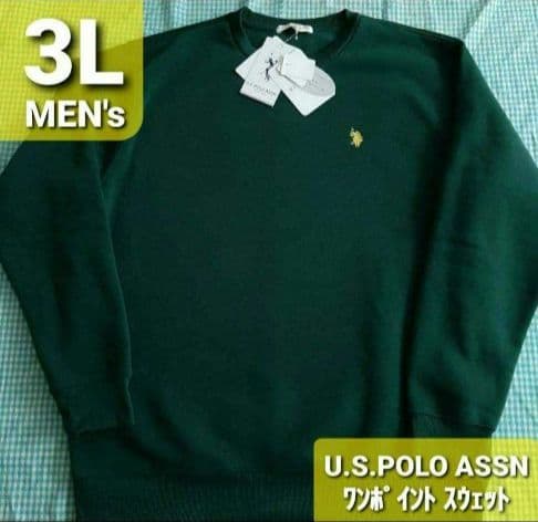 【US POLO ASSN】ワンポイント刺繍 スウェット■緑3L■大きいサイズ
