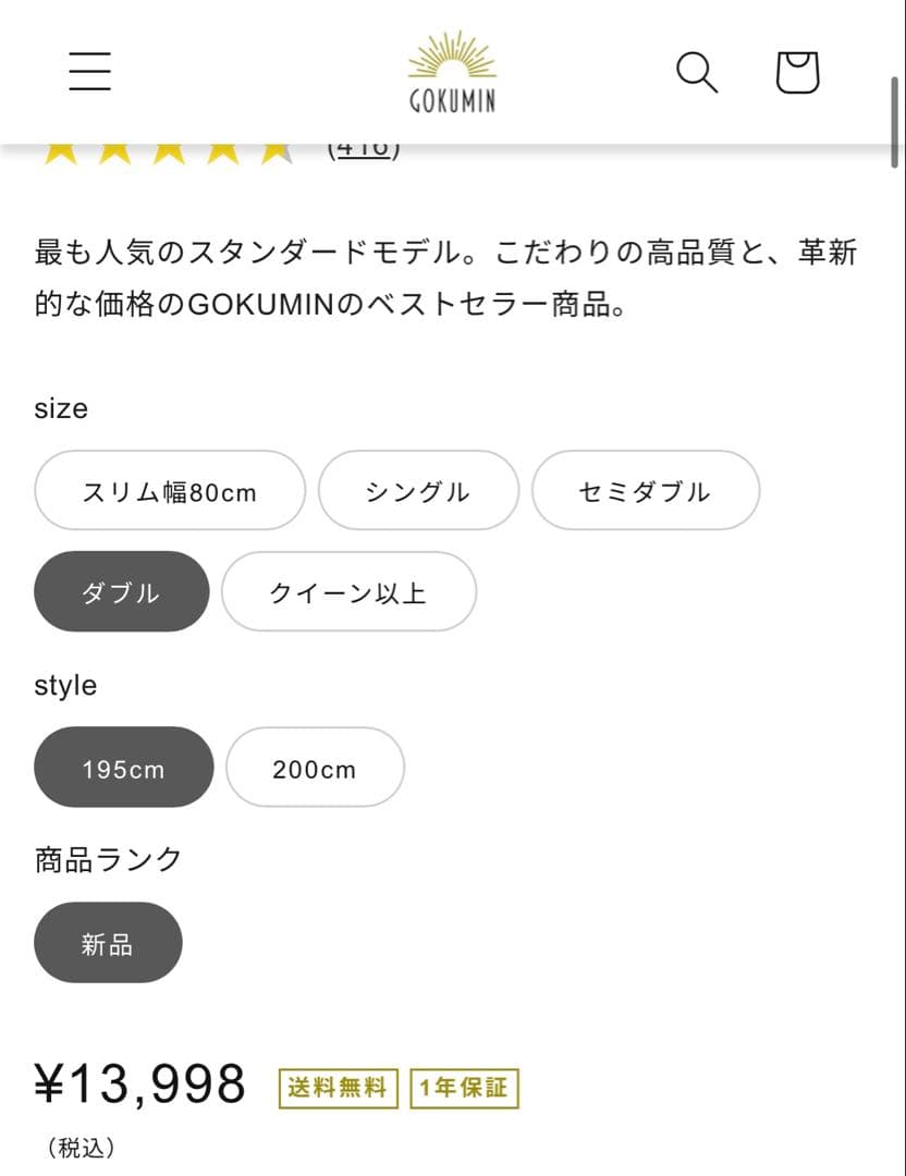 GOKUMIN 高反発 ダブル ウレタンフォーム マットレス 140×195cm