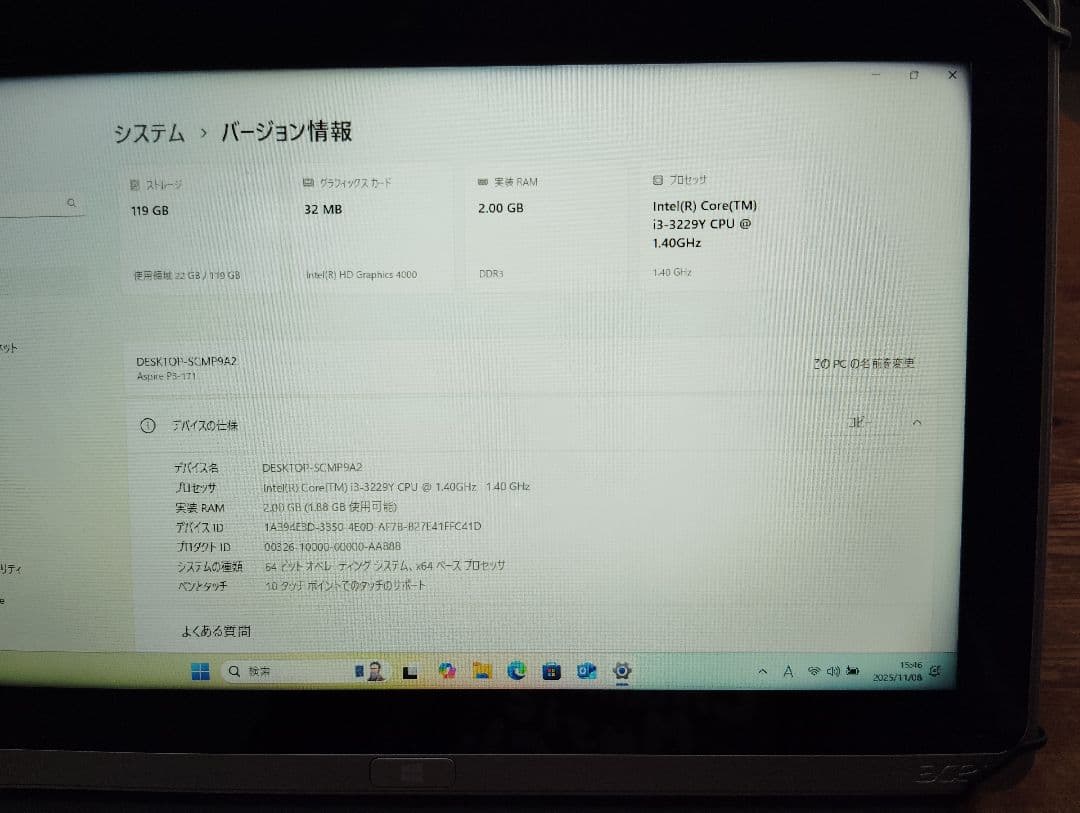 Acer Aspire P3-171 Core i3 ジャンク品