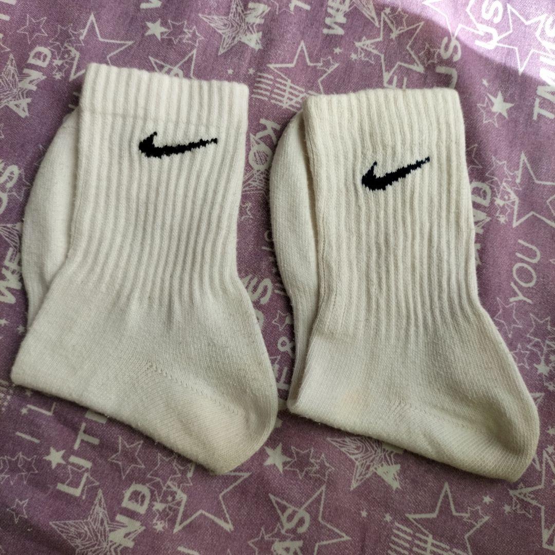 【ナイキ】ホワイトソックス中古 スクールソックス白色靴下23〜24cm