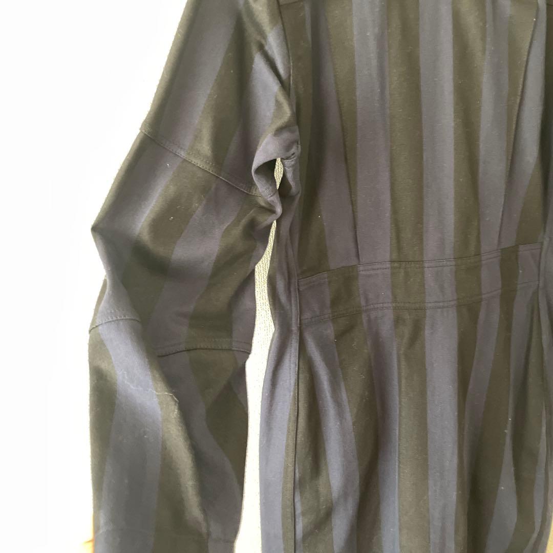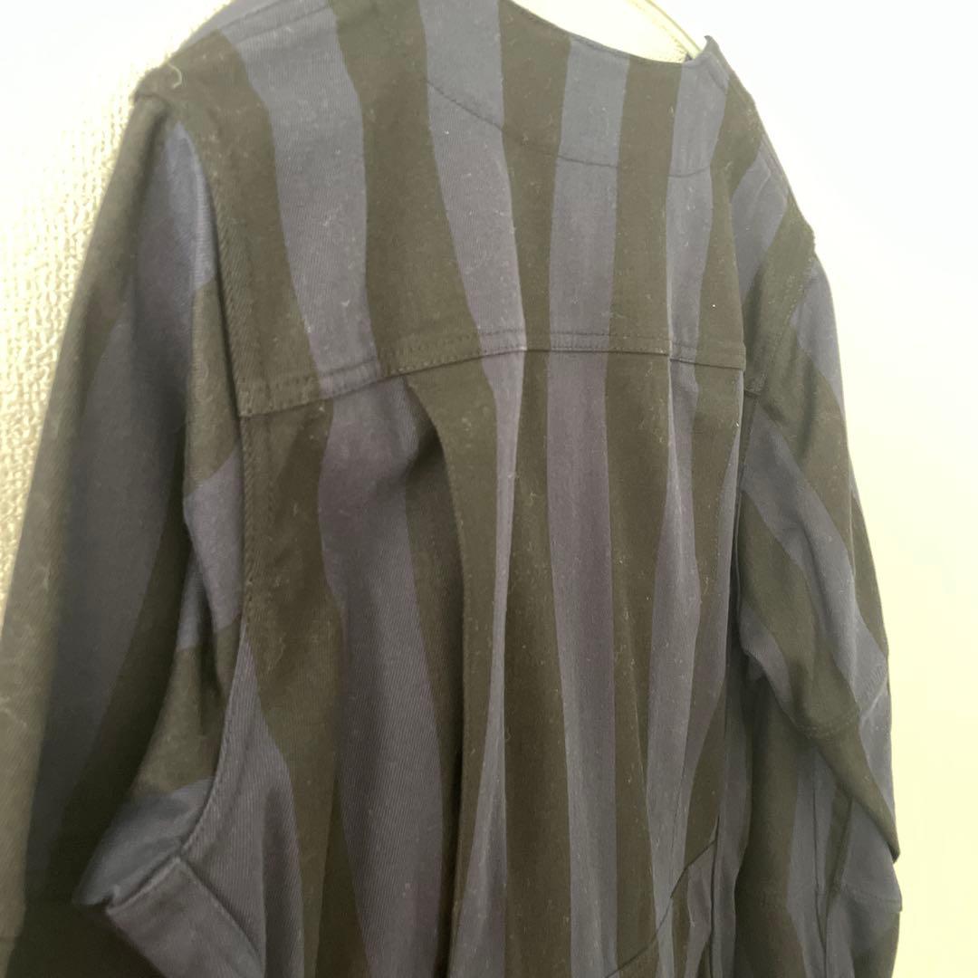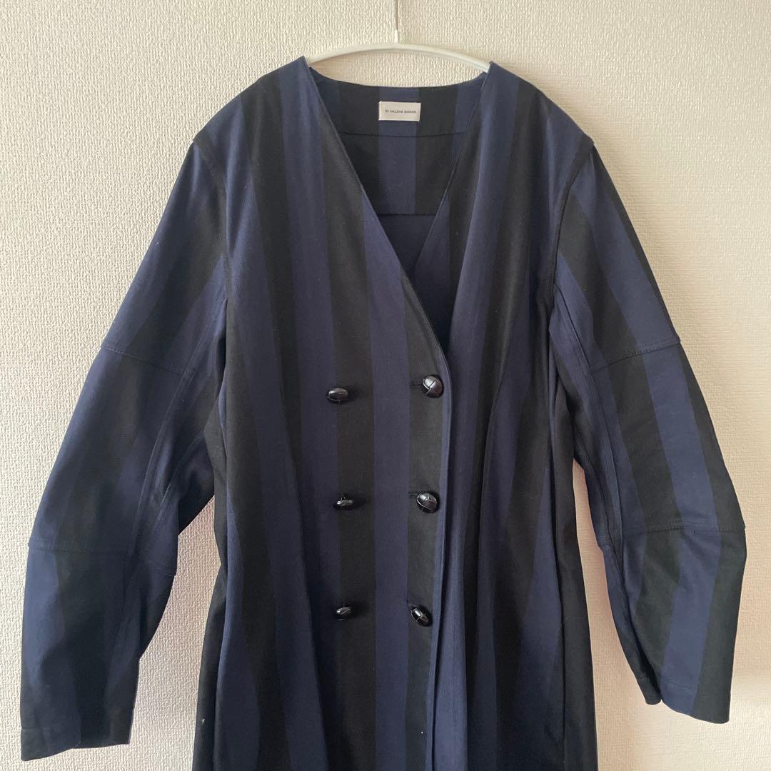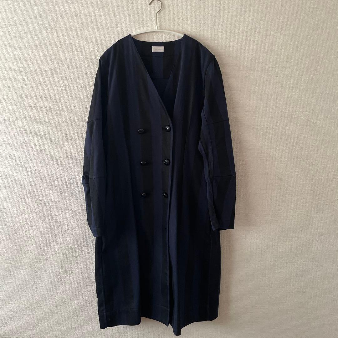 ネイビーとブラックのストライプ ダブルボタン コート 綿 コットン