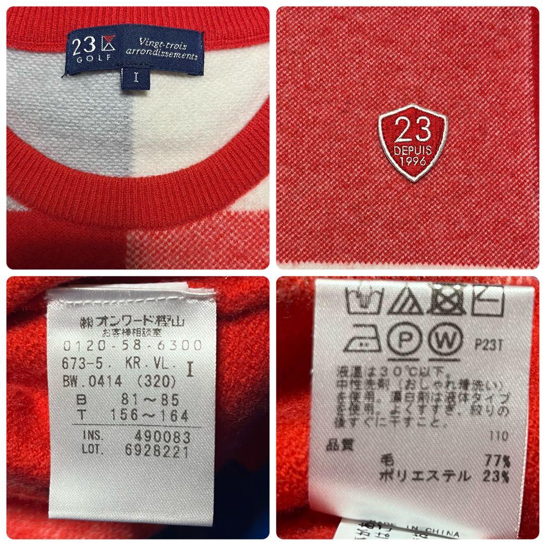23区 golf ゴルフ ブロックチェック柄 ニット セーター エンブレム M