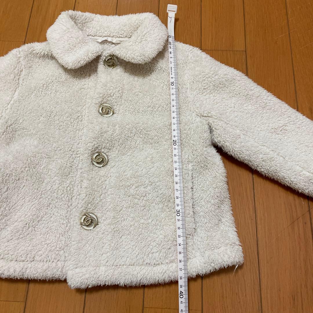 子供用 コート 90センチ フリース ボア 襟付き ホワイト 白 キラキラボダン