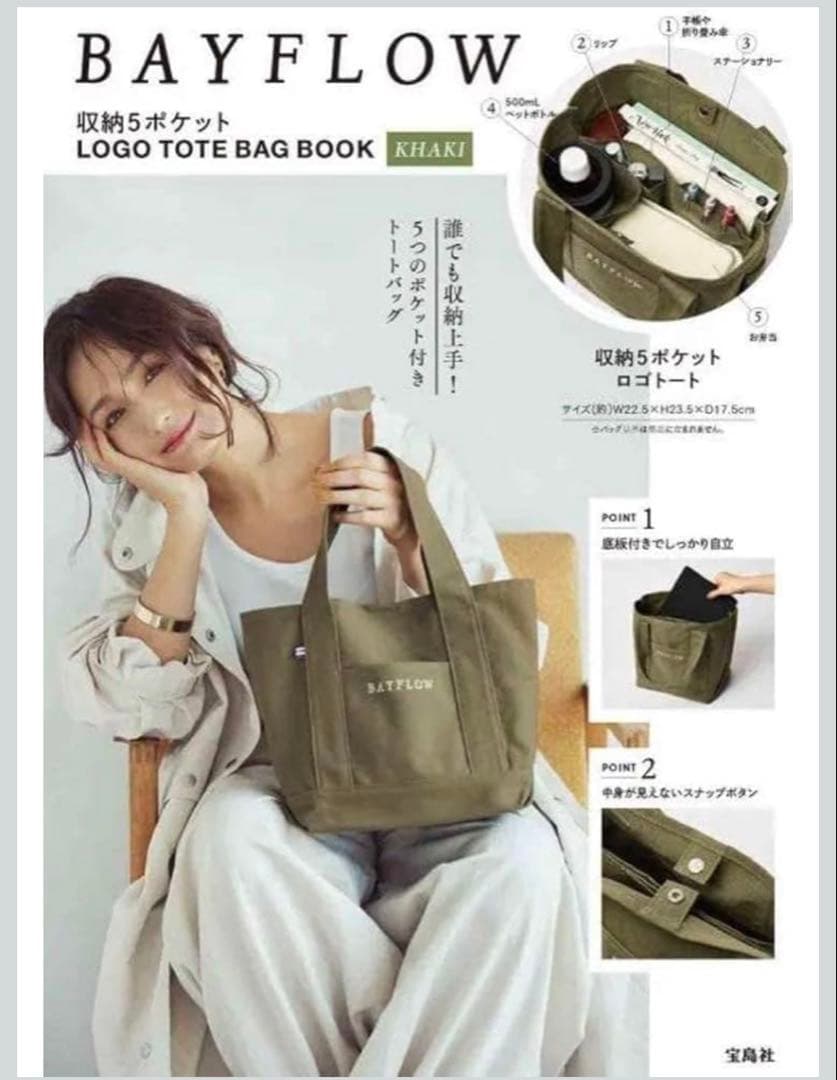 BAYFLOW ベイフロー 収納5ポケットロゴトートカーキ 宝島社 付録
