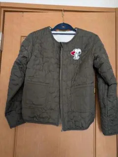 スヌーピー刺繍オリーブ色キルティングジャケット