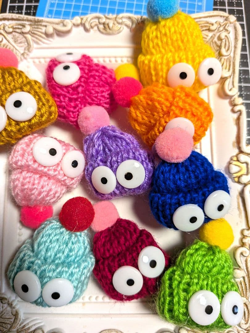 カラフルニット帽 ハンドメイド資材 10個セット ミニチュア ランダムMIX