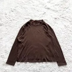 ハイネックカットソー 長袖 茶色 無地 L 綿100% カジュアル 日本製
