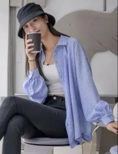 DAZY ストライプ ドロップショルダー シャツ ブルー