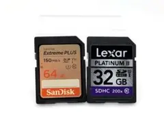 SanDisk 64GB、Lexar PLATINUM II 32GB2枚セット
