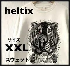 【Heltix 】トラ グラフィック スウェット 裏起毛 XXL 白 ホワイト