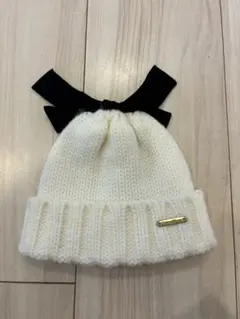 【極美品】brenches ホワイト ベビーニット帽 リボン付き