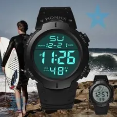 HONHX 腕時計 デジタル 多機能 ダイバーズウォッチ 3気圧防水