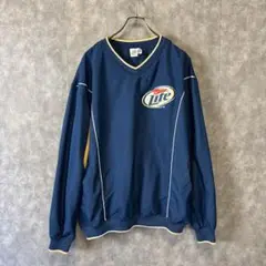 Miller Lite 刺繍ロゴ ナイロンプルオーバー XL 紺 メンズ古着