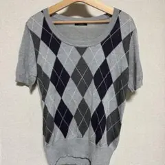 【中古】mame kurogouchi 総柄 リネン混コットン半袖ニット MM21PF-KN727 アイボリー×ブラウン サイズ:2 【090525】(マメクロゴウチ)
