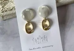 no.483 ラウンド ツートン ウッド アイボリー ピアス、イヤリング