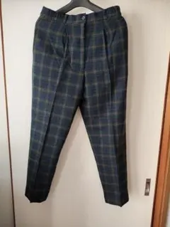 ネイビーとグリーンのチェック柄カジュアルパンツ