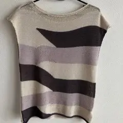美品グリーンレーベルリラクシング ノースリーブ アシメントリー 麻 コットン