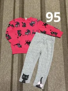 美品【セットアップ】ネコ総柄トレーナー&ネコ裾柄ズボン