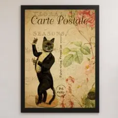 Carte Postale 黒猫のダンス イラスト アート 光沢ポスター A3