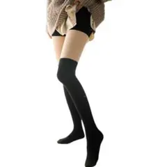 ゴルフ普段使い裏起毛 ブラック ニーハイ フェイクタイツ ニーハイソックス