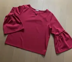 COLZA 赤 Vネック フレアスリーブ トップス カットソー Lサイズ