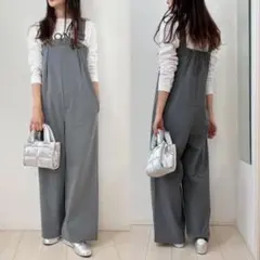 新品タグ付き GU タックサロペットパンツ グレー S 即日発送 美品