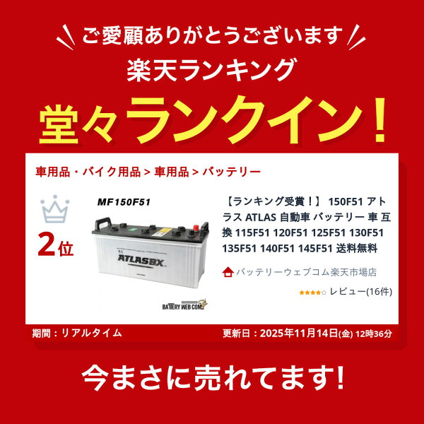 【ランキング受賞!】 150F51 アトラス ATLAS 自動車 バッテリー 車 互換 115F51 120F51 125F51 130F51 135F51 140F51 145F51 送料無料