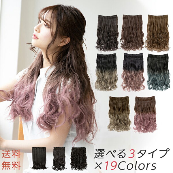 【選べる3タイプ19色】 ワンタッチ エクステ グラデーション 襟足ウィッグ ウィッグ ロング 自然 バレない 部分 カラーエクステ カール つけ毛 襟足エクステ 襟足 部分ウィッグ ツートン エクステンション 黒 赤 金 ピンク ウイッグ レディース 送料無料 FKR