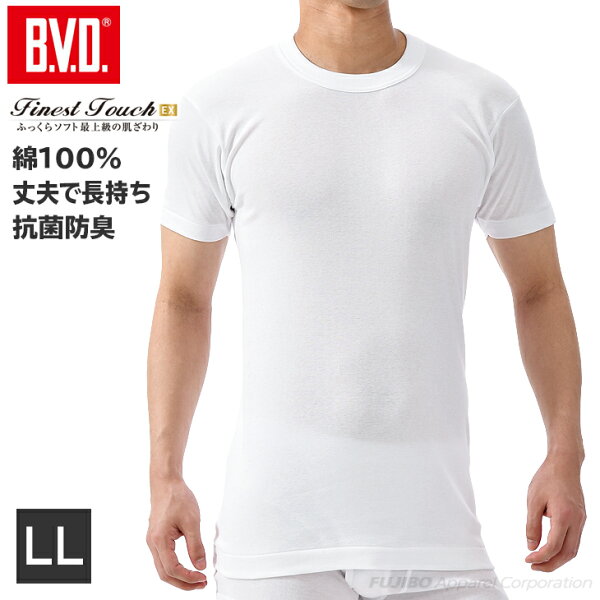 【300円OFFクーポン配布】【期間限定10%OFF】B.V.D. Finest Touch EX 丸首半袖Tシャツ(LL) 【綿100%】 シャツ メンズインナー 下着 肌着 抗菌 防臭【白】fe313-ll コットン