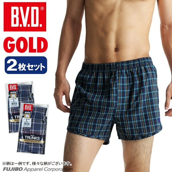 【300円OFFクーポン配布】【期間限定20%OFFセール】2枚組セット!B.V.D. GOLD トランクス M L LL 3L 4L 5L 6L チェック柄おまかせ2枚 綿100% メンズ インナー 下着 肌着 コットン