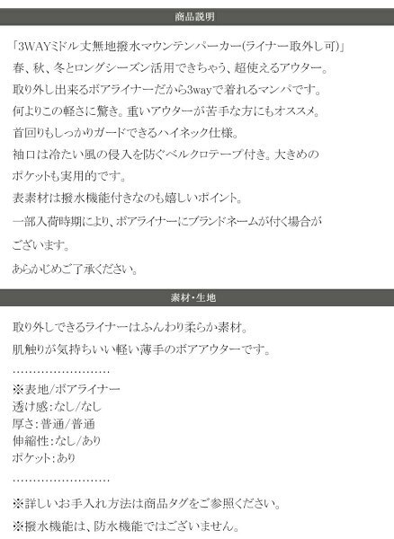 【 クラシカルエルフ classical elf 】 アウター マウンテンパーカー レディース 春 撥水 ユニセックス ジャケット ブルゾン フリース フード 軽量 大きいサイズ 3way 春 秋 冬 java ジャバ clf002