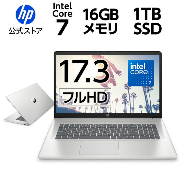 【公式・メーカー直販・送料無料】ノートパソコン office付き 新品 大画面 HP 17-cn IPS 17インチ Windows11 インテル Core 7 プロセッサー 150U 16GB 1TB テンキー Copilotキー搭載 1年保証 (型番: BD5D4PA)