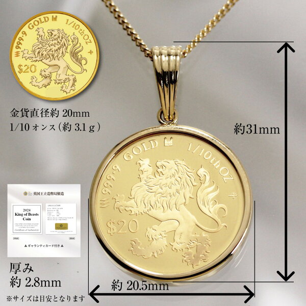 Translate【ふるさと納税】ネックレス 純金 2024年 獅子(ライオン) 1/10オンス 純金金貨 18Kネックレス イエローゴールド【ギャランティカード付】 | ジュエリー K18YG 18金 コイン 専用ケース付 アクセサリー ペンダント ファッション 高級 人気 おすすめ 送料無料 福岡市