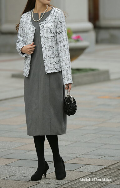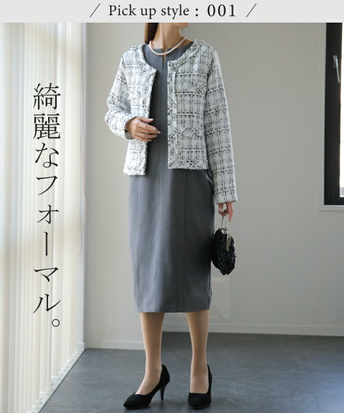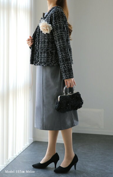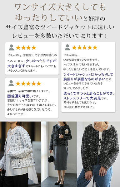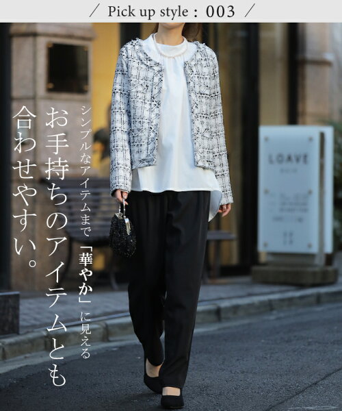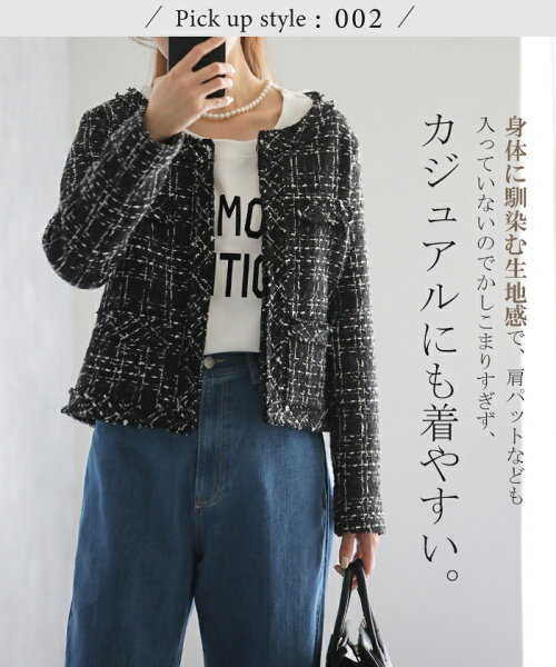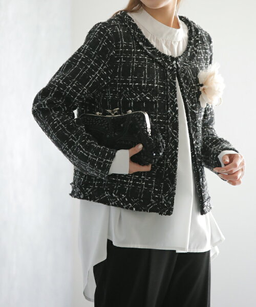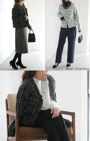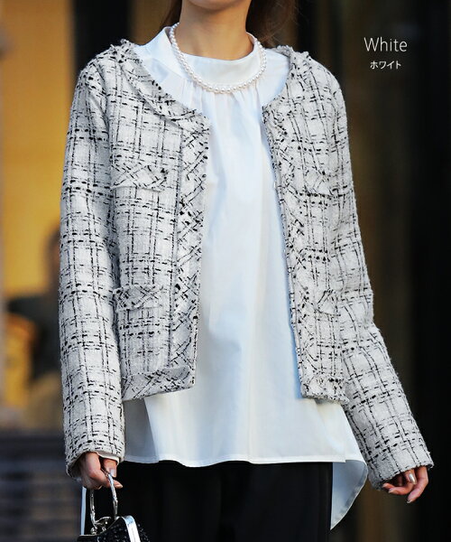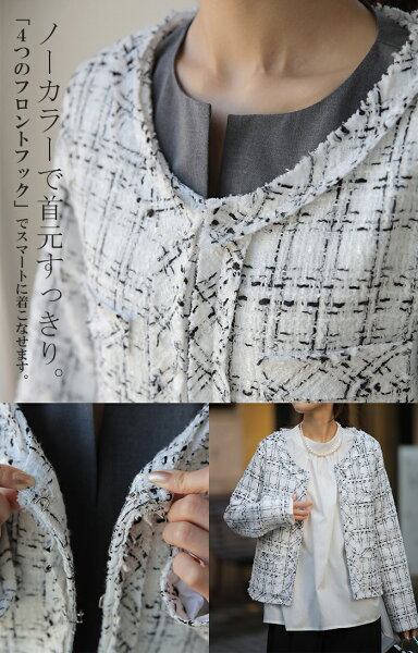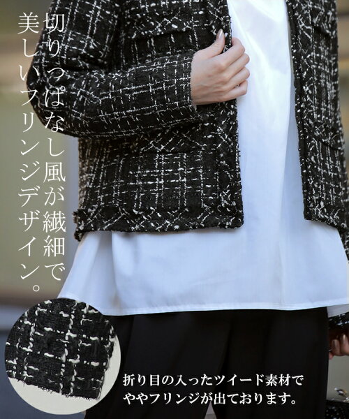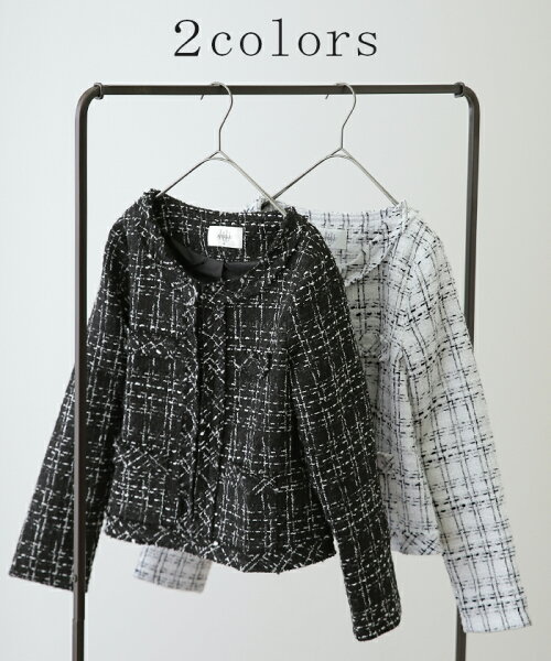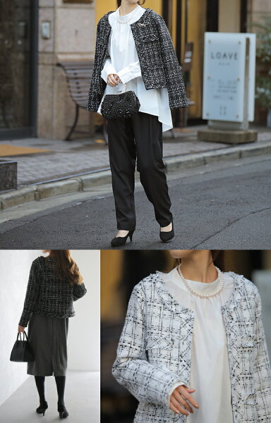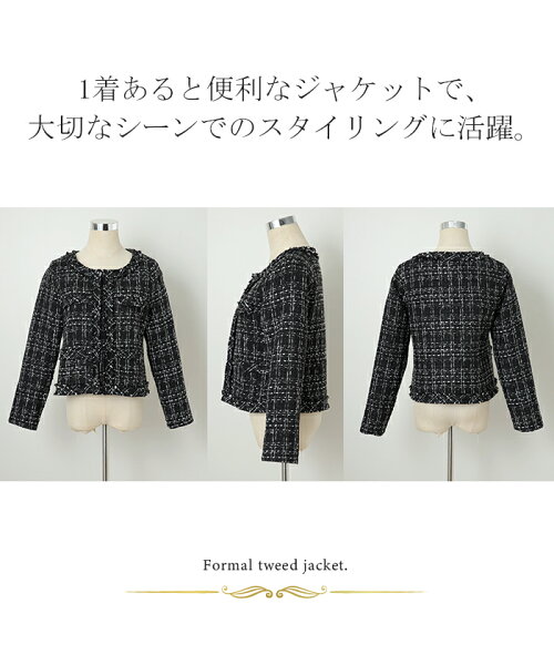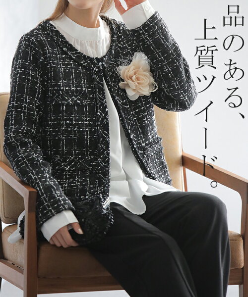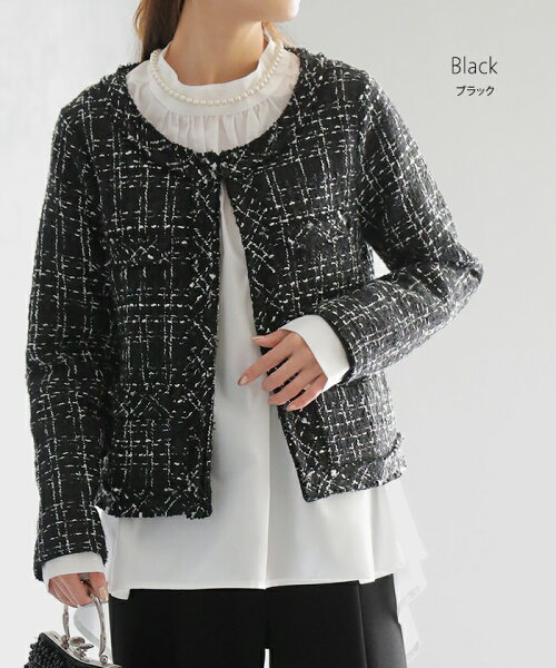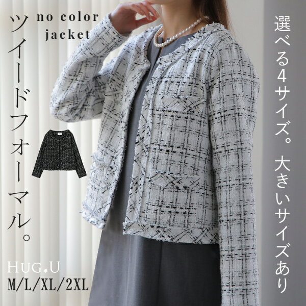 ツイードジャケット ノーカラー 大きいサイズ ツイード ジャケット ノーカラージャケット アウター レディース きれいめ トップス ママスーツ フォーマル 卒業式 入学式 スーツ ママ ブラック 黒 母 卒園式 入園式 長袖 羽織 秋 冬 HUG.U