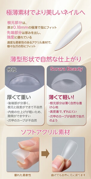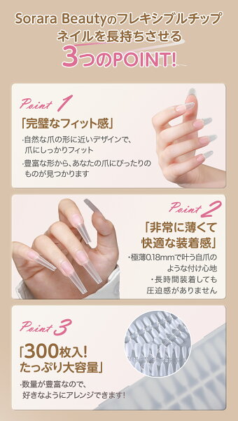 【100円OFFクーポン】【ネイルチップ 大容量300枚】 ショートオーバル・バレリーナ・ポイント 選べる6種類|Sorara Beauty フレキシブルジェルチップ クリアチップ 長さ出し つけ爪 セルフネイル・おうちネイルに EC