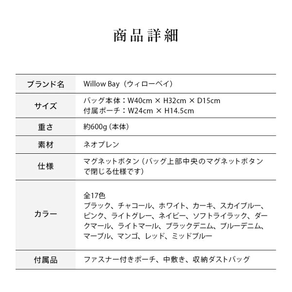 【早い者勝ち!10%オフ】ウィローベイ willow bay 日本公式販売店 ネオプレン トートバッグ マグネット ボタン マザーズバッグ | state of escape と同じ ネオプレーン 洗える バッグ トート ブランド A4 軽い かわいい 通勤 通学 大容量 底板 willowbay 出産祝い 母の日