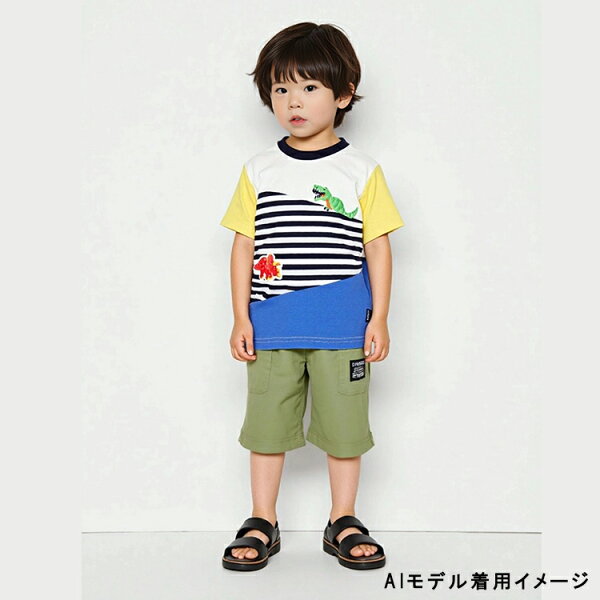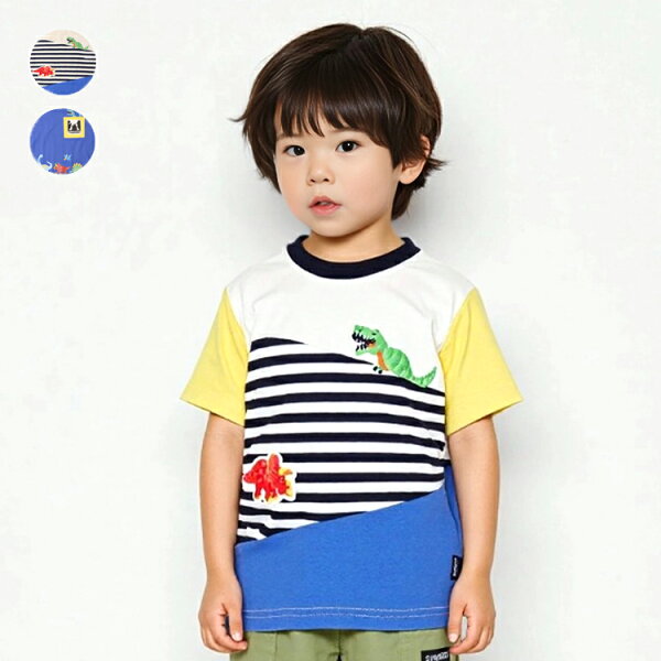 【25夏セール40%OFF】子供服 moujonjon (ムージョンジョン) 恐竜デザイン半袖Tシャツ 80cm 90cm 100cm 110cm 120cm M34841