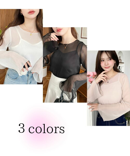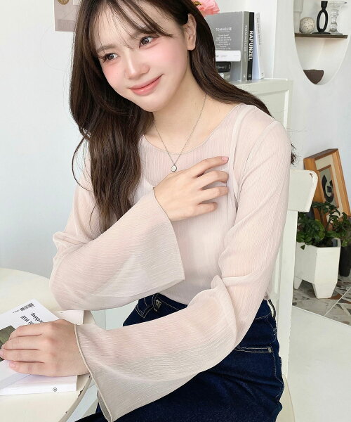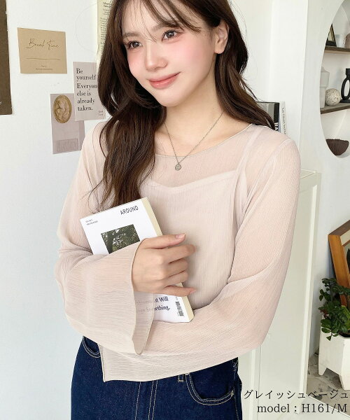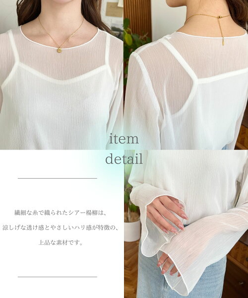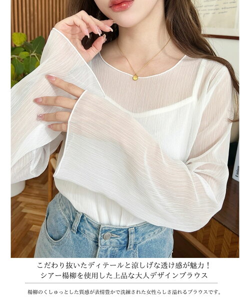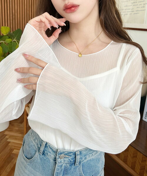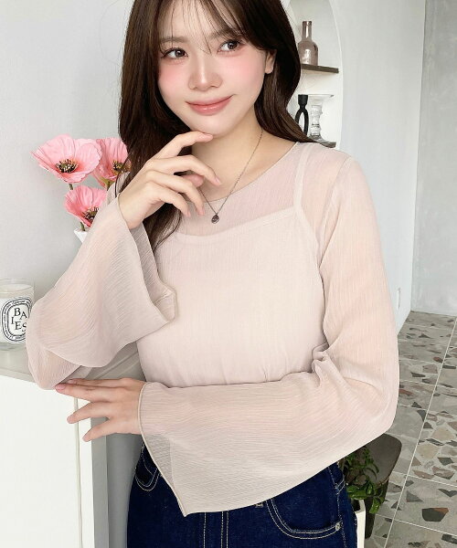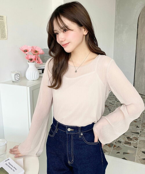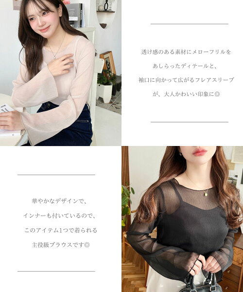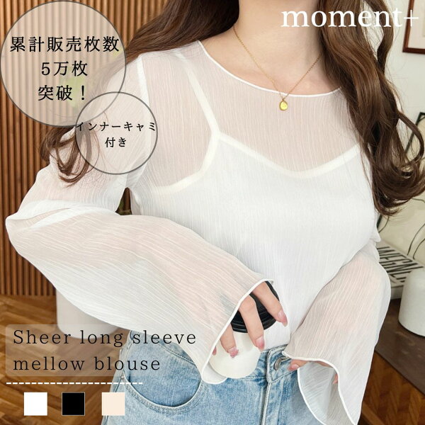 【累計販売枚数5.4万枚突破!/49%OFF 2,990→1,500円】トップス シアー ブラウス インナー キャミソール付き フレアスリーブ 透け感 長袖 レディースファッション 大人カジュアル プチプラ 2025SS 春 夏 mt02585 [moment+/モーメントプラス]