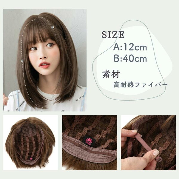 ミドル ストレート 後ろ髪 40cm 前髪 12cm フルウィッグ ナチュラル おしゃれ かわいい 通気性 ふわふわ ファッション ウイッグ おとなかわいい 大人かわいい かつら 女性 お出かけ イメチェン 送料無料