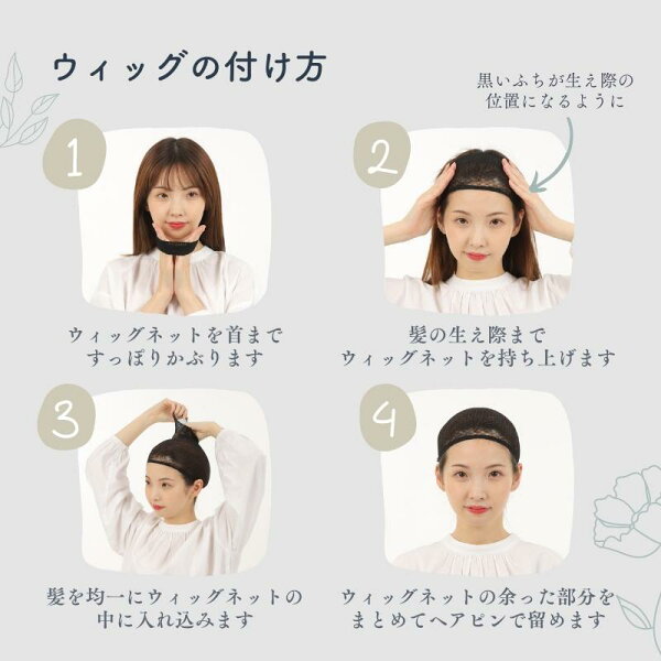 1.付属のウィッグネットを頭からかぶり、首まで持っていきます。