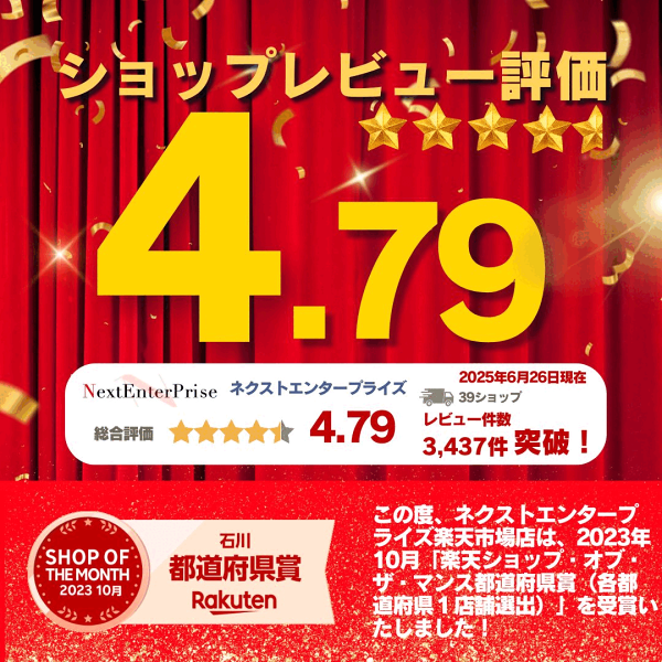 ショップレビューも3400件を超え、ショップレビュー4.79を獲得出来ました。