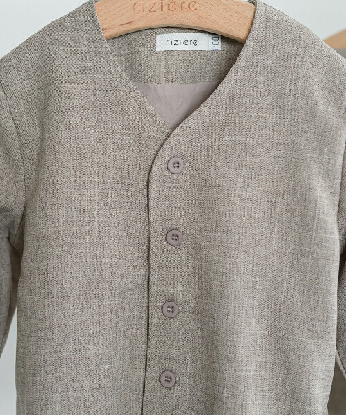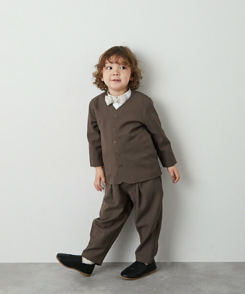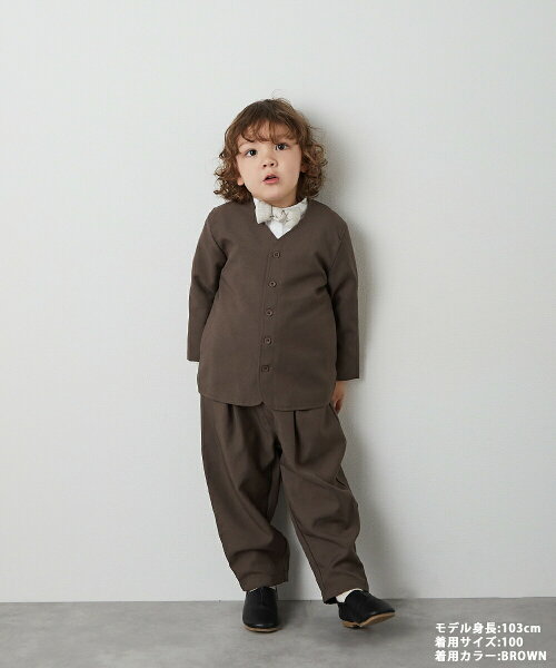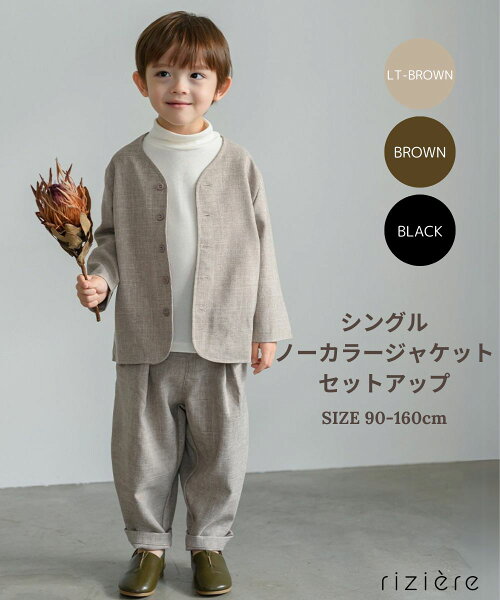 モデル身長 98cm 着用サイズ 100cm着用(BROWN/LT-BROWN/BLACK着用)卒園・入学や七五三、結婚式など、フォーマルシーンで人気のジャケットセットアップに、シングルボタンver.が登場。無駄のないフォルムできちんとした装いはもちろんのこと、インナー次第でカジュアルなスタイリングにも使えて一石二鳥。ジャケットをいつものコーデに羽織ってカーディガンがわりにした着こなしもおすすめです。商品画像に関して、撮影時のライティングやご覧になっている表示環境により、実際の商品と色味が異なって見える場合がございます。予めご了承ください。※riziereはエシカル消費にも取り組み、生産の途中で出た多少の色ムラやロットぶれを許容する事により、生産者を守り、お客様へのリーズナブルな価格提供も可能としております。■occasion itemsフォーマルベスト(裏地ストライプ)ノーアイロンバンドカラー比翼シャツ(ボタン取り外し対応)シームレスハイネックプルオーバー蝶ネクタイフェイクレザースリッポンシューズ(フォーマル 対応)
