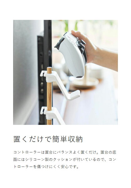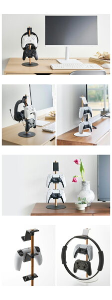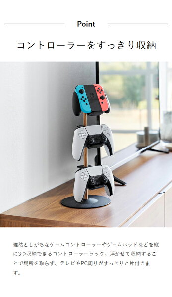 雑然としがちなゲームコントローラーやゲームパッドなどを縦に3つ収納できるコントローラーラック。浮かせて収納することで場所を取らず、テレビやPC周りがすっきりと片付きます。