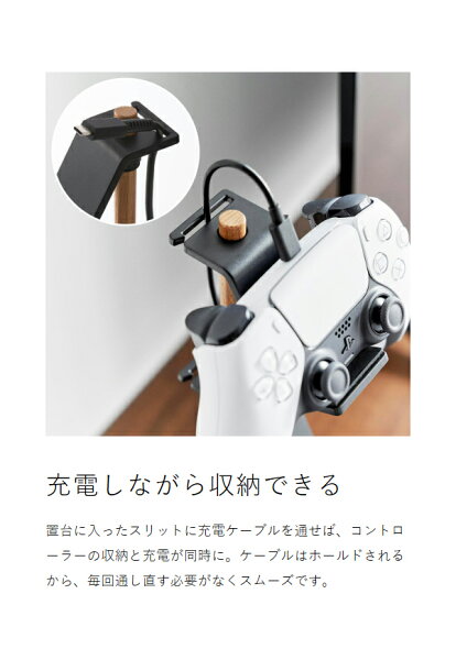 置台に入ったスリットに充電ケーブルを通せば、コントローラーの収納と充電が同時に。ケーブルはホールドされるから、毎回通し直す必要がなくスムーズです。