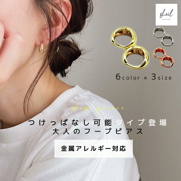 【Xmasセール! 最大15%OFFクーポン】 フープピアス ピアス 金属アレルギー キャッチレス シルバー ゴールド ニッケルフリー フープピアス 小さめ リングピアス 韓国 アクセ シンプル かわいい おしゃれ 大人 可愛い プレゼント ギフト 中折れ sheil