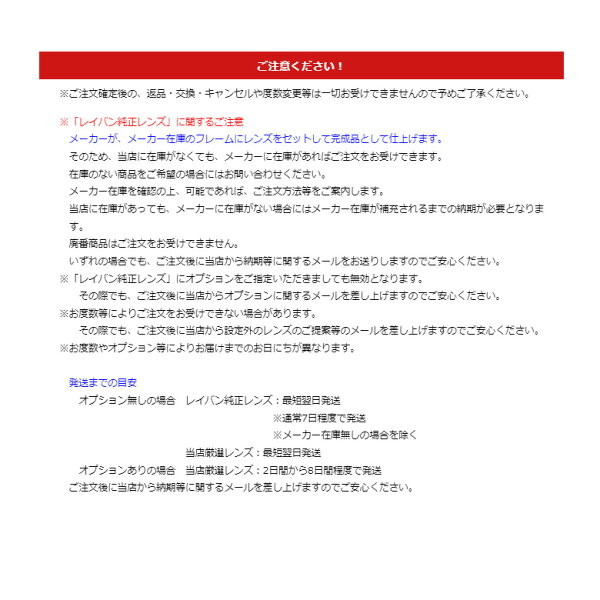 ※当店指定のレンズに限らせていただきます。レンズ名の指定は、お受けいたしかねます。