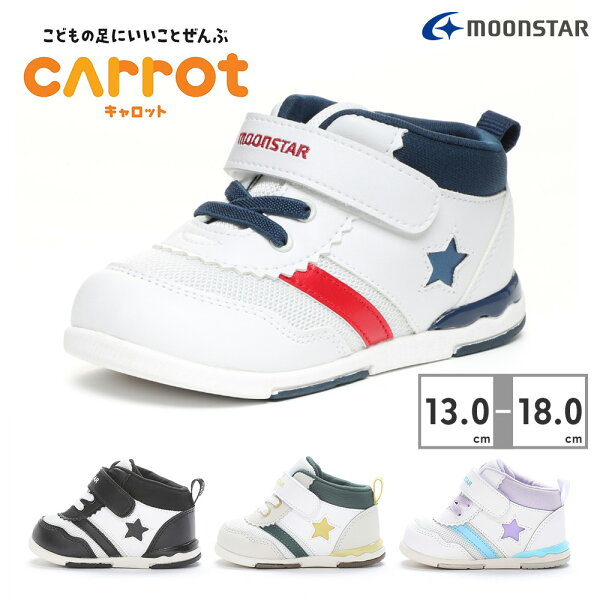 【ランキング受賞】 【全国送料無料】 moonstar スニーカー キッズ キャロット MS B95 ムーンスター CARROT ベビー つま先幅広 2E ハイカット